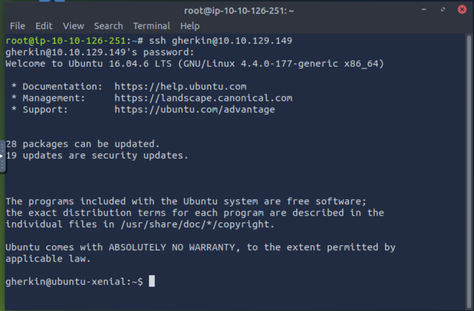 ssh gherkin@10.10.x.x