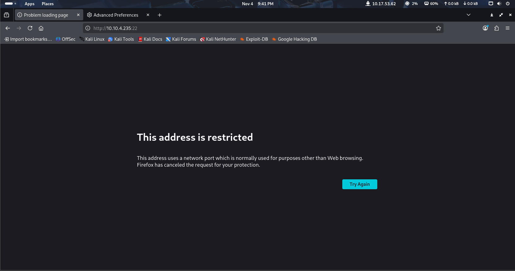 You’ll find that your browser most likely throws a hissy fit when you attempt to access the webserver at http://<machine-ip>:22