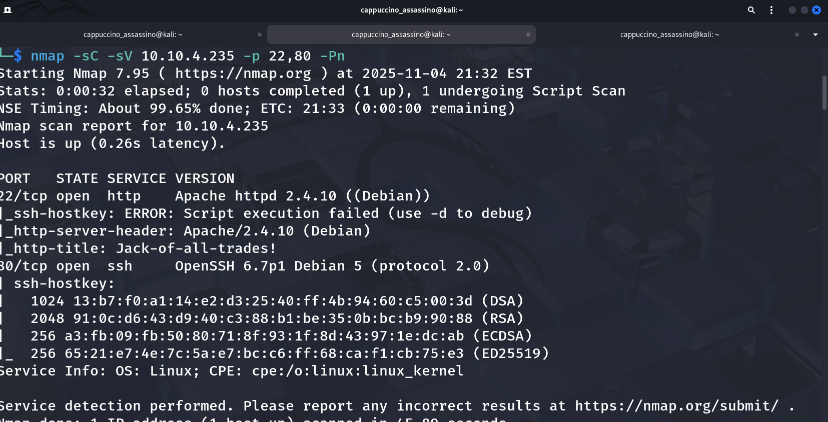 Full, step-by-step walkthrough for TryHackMe — jack-of-all-trades. I explain the techniques used (recon, web enumeration, RCE, credential harvesting, getting a shell inside a container, and Docker socket escape).