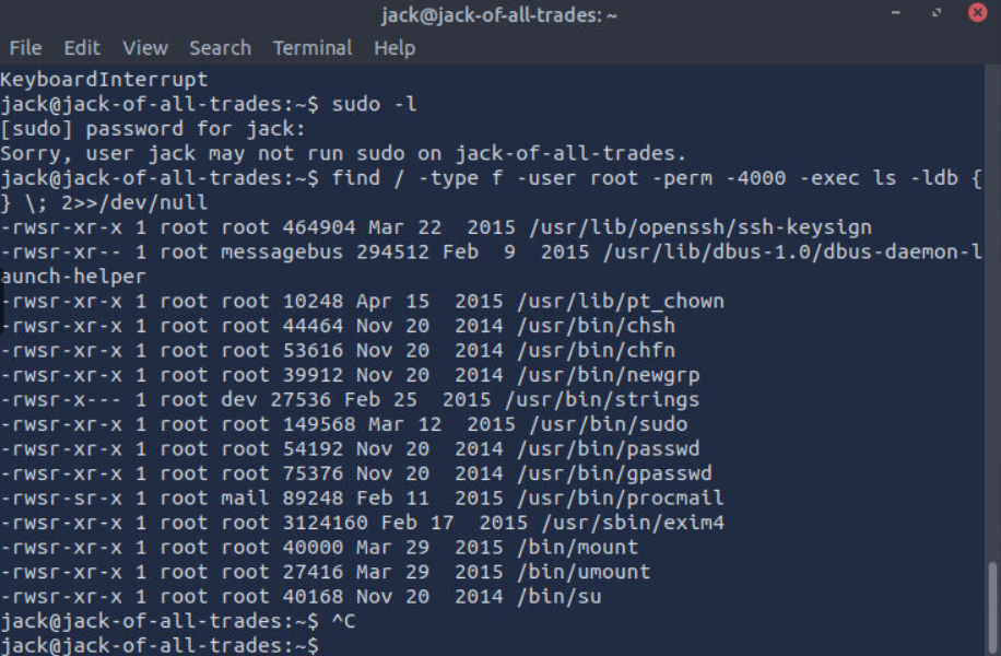 sudo -lto list allowed sudo commandsfind / -type f -perm -4000 2>/dev/nullto find SUID binariesstringson interesting binaries or files (e.g.,/usr/bin/strings,/root/notes, etc.)- Search for leftover notes, credentials, or scripts in